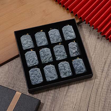 Signs of The Zodiac - Collection of 12 Natural Type A Jadeite Necklaces with Adjustable Length Presented in a Gift Box 750.00 Ct.