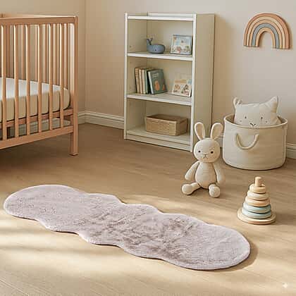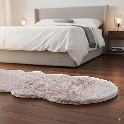 THE SUPER LUXURIOUS -HUSH HAVEN Cloud-Shaped Faux Fur Runner Rug With Foam Base (180 x 60 cm) - Ivory