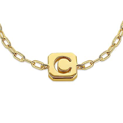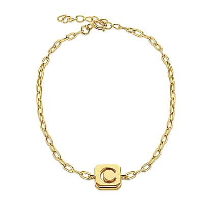 Sterling Silver Yellow Gold Plated 8mm x 9mm Initial C Initial Bracelet 6.7 Inch to 8 Inch