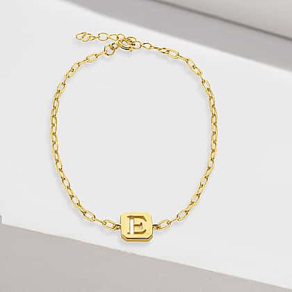 Sterling Silver Yellow Gold Plated 8mm x 9mm Initial E Initial Bracelet 6.7 Inch to 8 Inch