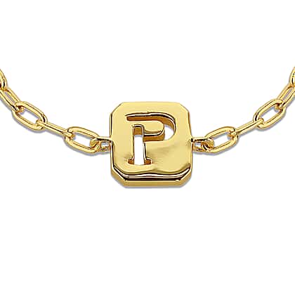 Sterling Silver Yellow Gold Plated 8mm x 9mm Initial P Initial Bracelet 6.7 Inch to 8 Inch