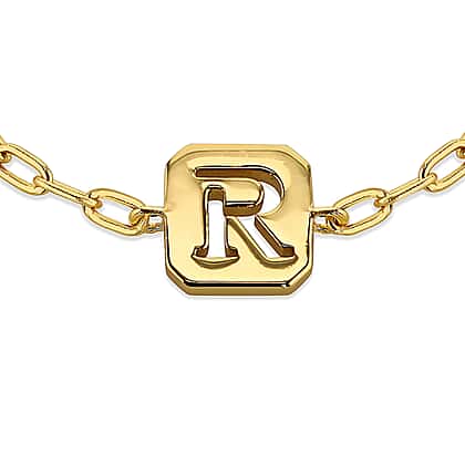 Sterling Silver Yellow Gold Plated 8mm x 9mm Initial R Initial Bracelet 6.7 Inch to 8 Inch