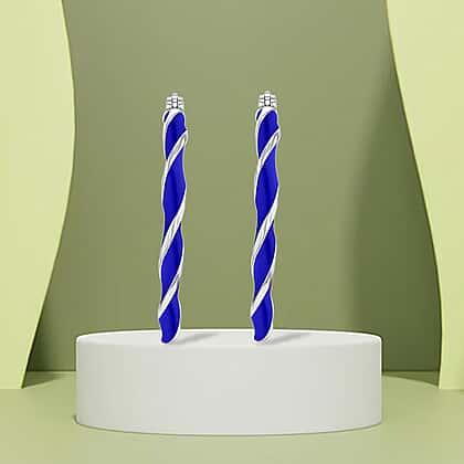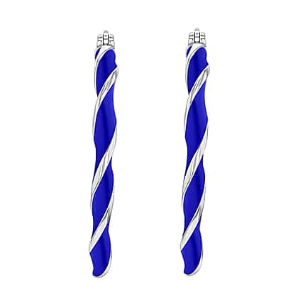 Blue Enamel Large Twister Hoop Earrings in Sterling Silver Rhodium Plated 31mm