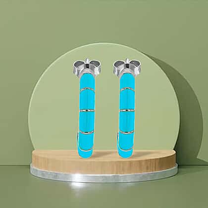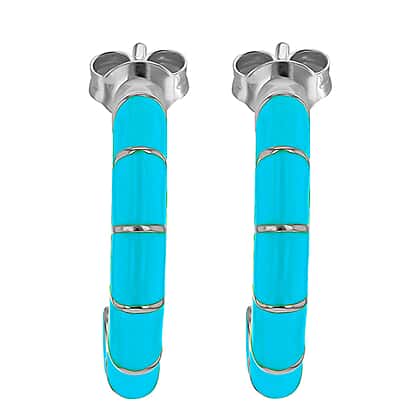 Turquoise Enamel Half Hoop Stud Earrings in Sterling Silver Rhodium Plated 3mm x 16.5mm