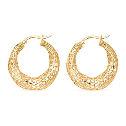 Exclusively made for you to bring resplendent charm with this silver hoop earring that radiates brilliance with its unique woven design. This masterpiece is crafted in hypoallergenic 925 sterling silver offering durability and comfort, even for sensitive skin. The lavish yellow gold plating offers extra shine and beauty, making the piece suitable for special events. This lightweight piece comes complemented by back finding clasp for security and effortless styling allowing you to wear throughout the day. Add this quintessential accessory for both glamorous occasions and refined everyday wear.