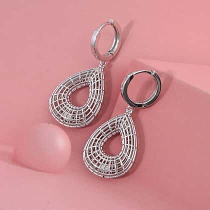 Treasure of Siam - Rhodium Overlay Sterling Silver Openwork Teardrop Earring with Hoop