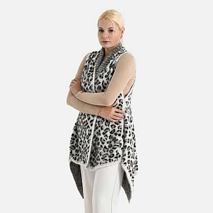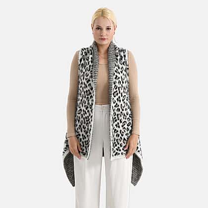 Styled By Leopard Print Sleeveless Waterfall Draped Cardigan (Fits UK 10-18) - White