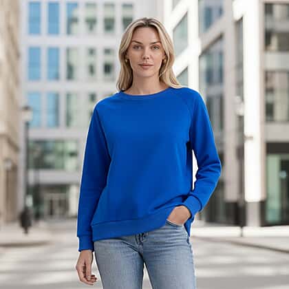 Styled By Casual Round-Neck Solid Color Long-Sleeve Top (Size S) - Blue