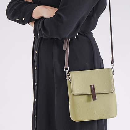 Stylish Two-Tone Genuine Leather Rectangular Flap Crossbody with Brown Adjustable Strap - Pistachio