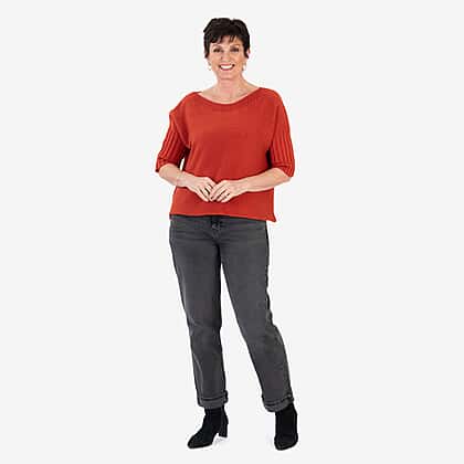 Sugar Crisp Ribbed Off-Shoulder Boat Neck Jumper (One Size, Upto 18) - Brick