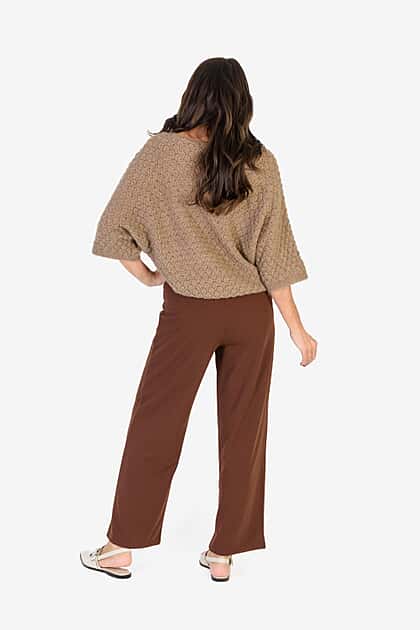When looking for elevated winter wardrobe essentials that transcend trends, always consider a cosy-knit jumper like this Sugar Crisp crochet jumper. This mocha hue jumper makes for a reliable outfit that can be with different outfit combinations in your closet.This crochet knit oversized jumper is all about effortless style with maximum comfort. With its soft texture, relaxed fit, and batwing quarter sleeves, it gives you that laid-back look. The loose drape makes it perfect for layering, lounging, or elevating your everyday denim.