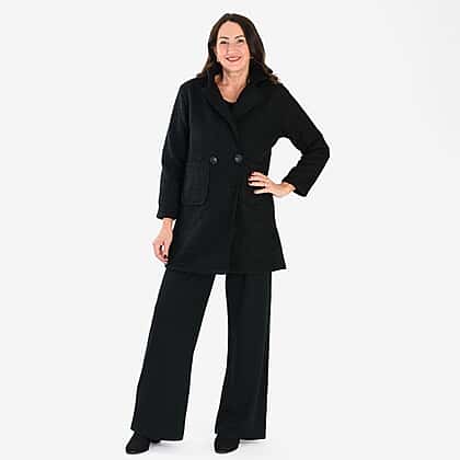 Sugar Crisp Made In Italy Two Button Boucle Coat With Pockets (One Size) - Black