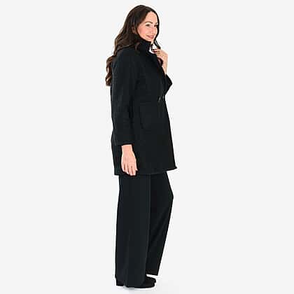 Refresh outerwear choices with the Sugar Crisp made-in-Italy two-button boucle coat, designed to offer warmth with a structured, easy-to-wear shape. Crafted from textured boucle fabric, this coat provides a cosy feel while maintaining a bright, put-together look. The two-button front makes fastening simple, while the open neckline keeps the design relaxed and flattering. Functional pockets add everyday practicality, making it suitable for regular wear. Finished in a rich black shade, it brings a welcome lift to cooler-weather dressing. The one-size design is created to sit comfortably across a range of body shapes.