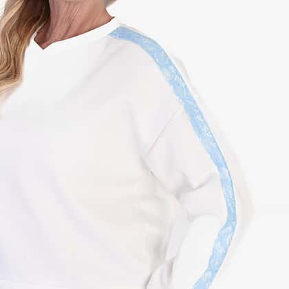 Sugar Crisp Italian Made Round Neck Contrast Lace Sleeve Casual Sweatshirt (One Size) - White
