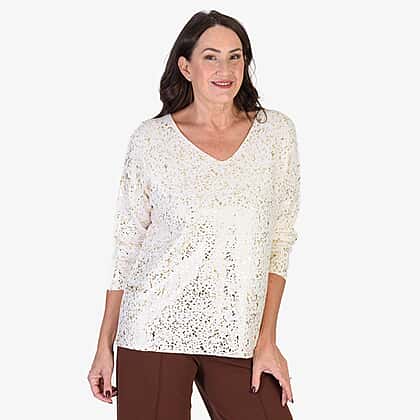 Sugar Crisp Foil Printed Embellished Jumper (One Size) - Ivory