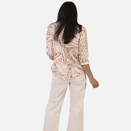 Sugar Crisp Italian Made V-Neck Abstract Print Top One-Size (Fits upto Size 22) - Stone