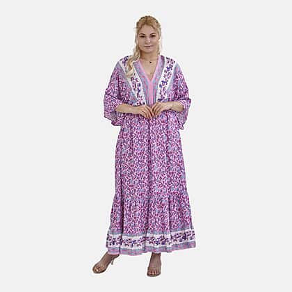 Step into effortless elegance with the TAMSY mixed print elastic waist maxi dress. Crafted from 100% viscose, this maxi dress features a flattering V-neck with a charming tie-string detail. The mixed print design adds a touch of bohemian flair, while the elastic waist ensures a comfortable and flattering fit for all body shapes. The 2-tier skirt creates a graceful silhouette, making it perfect for both casual outings and special occasions. Enjoy the blend of style and comfort in this versatile maxi dress that will become a wardrobe favourite.