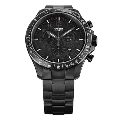 TRASER P67 Officer Chrono Swiss Made Quartz 10ATM WR Black Dial - Black Case Mens Watch with Black Stainless Steel Strap