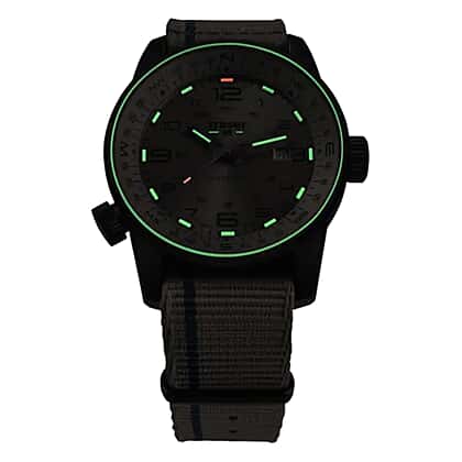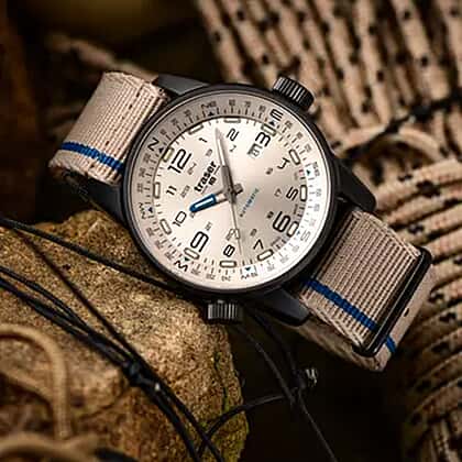 If you like the toughness and thrill of an adventure, this Traser P68 Pathfinder Automatic Watch makes for a great pick. Powerful, sleek, and built for the toughest moments, the P68 Pathfinder blends high performance with modern, understated style. Its beige dial and durable stainless steel case create a clean, outdoor-ready look that feels both bold and minimal. The sapphire crystal resists scratches, while the internal compass bezel keeps visibility and direction sharp in any environment.Designed for durability, it features a comfortable beige NATO strap made for long wear, from rugged trails to everyday routines. Running on a precise Swiss automatic movement, this watch stays reliable when it matters most. Water-resistant up to 10 bar, it is prepared for rain, rough terrain, and changing conditions. Trigalight markers and glowing hands offer easy readability after dark, making it a timepiece built for confidence and control.