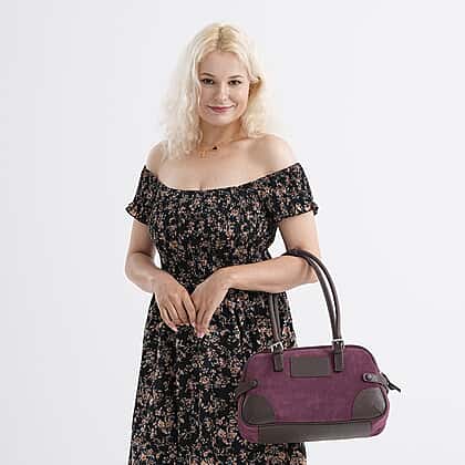 Looking for a bag that can take you from desk to yoga? This spacious and stylish bowling bag makes for a great pick. This dark plum bag made with genuine leather features chocolate brown leather accents that adds a luxe, warm touch to the design. It features sculpted handles, buckle-detailed straps, and the best part about them is that they can make your outfit look thought out and polished. It comes with a zipper closure and features polyester inner lining that helps to make this bag more durable.