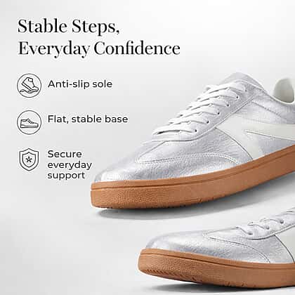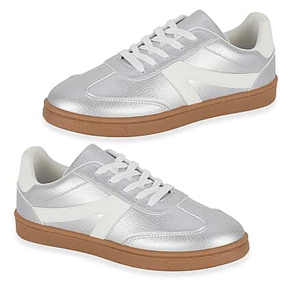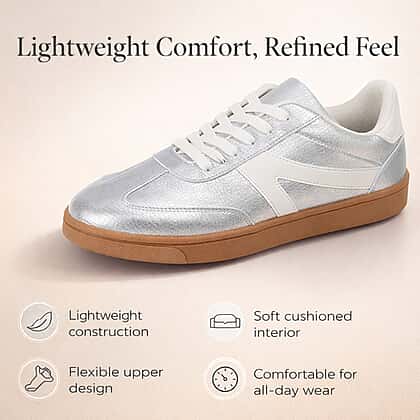 Chic and contemporary, the silver Urban Jacks Matise Lightweight Women’s Trainer brings a subtle shine to everyday footwear. The soft upper ensures a comfortable fit, while the lightweight design keeps steps feeling effortless. Built with an anti-skid, anti-slip sole, it offers reliable grip without compromising on style. Finished in a sleek metallic shade, this pair adds a modern edge to casual looks while staying practical and wearable.