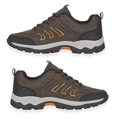 Step outdoors with ease in the Urban Jacks Men's INGLETON Trek Trainers in Brown. Designed with adventurous days in mind, these trainers combine breathable mesh panels and PU overlays for lasting comfort and durability. The cushioned insole and padded ankle collar provide exceptional support, while the sturdy rubber outsole delivers superb traction across all terrains. Finished with striking orange accents, these trainers add a sporty touch to your outdoor look. Ideal for walks, hikes, or casual wear, they’re a dependable choice for every active lifestyle.