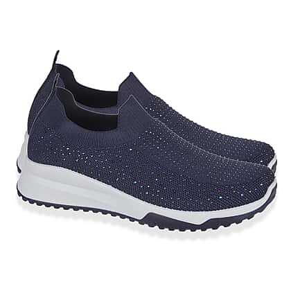 Walking comfortably through everyday plans becomes effortless with these slip-on trainers, created with a soft knit upper that moves naturally with the foot. The subtle diamond detailing adds a gentle sparkle, giving the navy shade a refined edge that suits everything from weekend denim to laid-back work looks. A soft insole delivers noticeable comfort from morning to evening, while the lightweight build keeps each step feeling easy. The slip-on style makes heading out simple, offering a practical choice for errands, social plans or relaxed strolls. Blending comfort with understated style, they make a dependable addition to daily wardrobes.