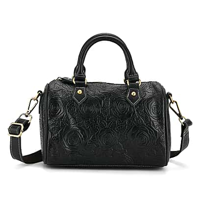 Valissiere Brocade with Genuine Leather Satchel Handbag with Shoulder Strap (120 cm) - Dark Green