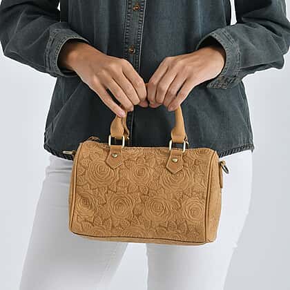 Valissiere Brocade with Genuine Leather Satchel Handbag with Shoulder Strap (120 cm) - Yellow