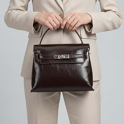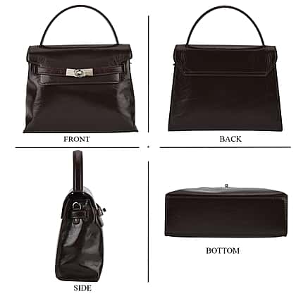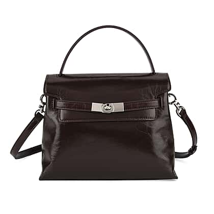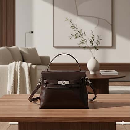 Valissiere Designer Inspired Genuine Leather Structured Satchel Handbag With Crossbody Strap - Dark Coffee