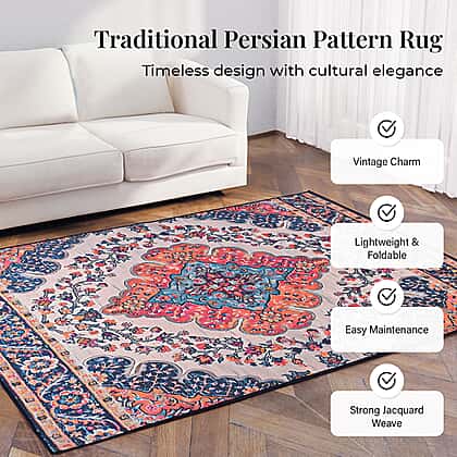Vintage Printed Chenille Area Rug with Non-Slip Backing (180x120cm) - Blue and Multicolor