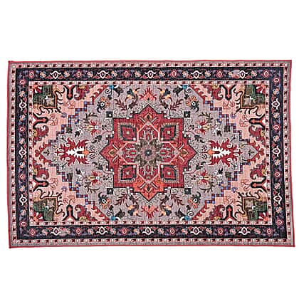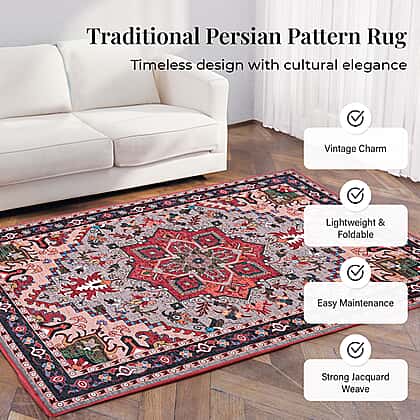 Vintage Printed Chenille Area Rug with Non-Slip Backing (180x120cm) - Red & Multicolor