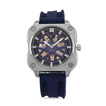 MAJESTY Automatic Mechanical 3ATM WR Blue Hollow Dial - Silver Case Mens Watch with Blue Silicone Strap