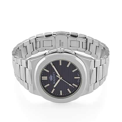 ONE TIME DEAL - Majesty Miyota 2035 Movement 3ATM Water Resistant Navy Blue Hydraulic Dial Watch with Silver Colour Strap