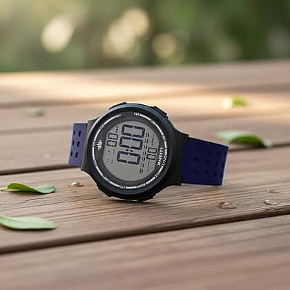 The MAJESTY Multifunctional Digital Watch in blue PNP plating offers a fresh, sporty aesthetic with smart performance. The durable plastic case and multifunctional key allow quick access to time, week, date, stopwatch, night light, and alarm functions on a clear LCD dial. Its 3ATM water resistance supports daily activity. Completed with a blue TUP strap and stainless-steel buckle for a secure feel. Powered by a 2025 battery for long-lasting reliability.