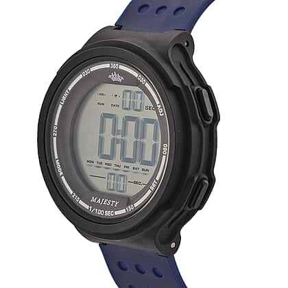 MAJESTY Digital Electronic 3ATM WR LCD Dial - Black Case Mens Watch with Blue TUP Strap