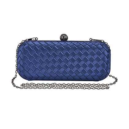 Weave Pattern Clutch Bag with Shoulder Metal Chain - Navy