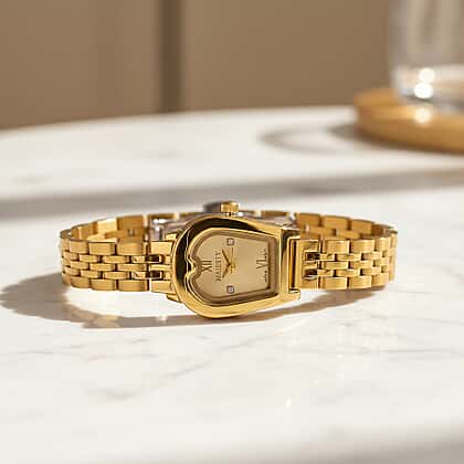 MAJESTY Quartz 7T35 Japan Movement 3ATM WR Gold Sunshine - Crystal Dial - Gold Case Ladies Watch with Gold Stainless Steel Strap