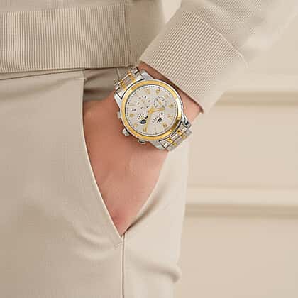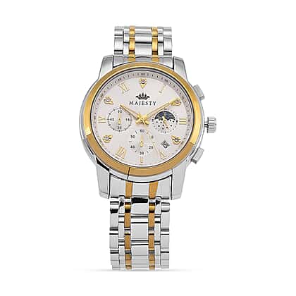 MAJESTY ELITE EDITION - MAJESTY Multifunctional Quartz LD53 WR White Day and night Dial Indicator - Two-Tone Case Mens Watch with Two-Tone Stainless Steel Strap
