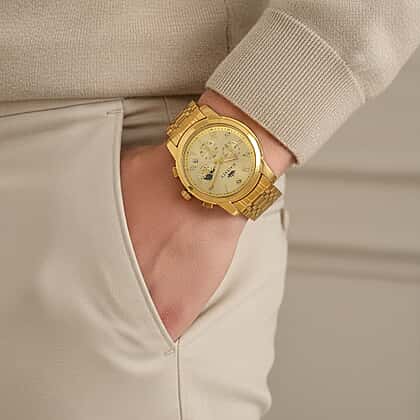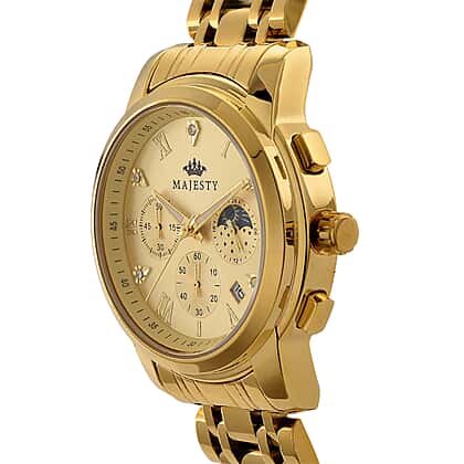 MAJESTY ELITE EDITION - MAJESTY Multifunctional Quartz LD53 WR Gold Day and night Dial - Gold Case Mens Watch with Gold Stainless Steel Strap