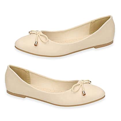 Spot On Ladies Leather Collection Bow Trim Ballerina Shoes (Size 3) - Nude