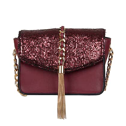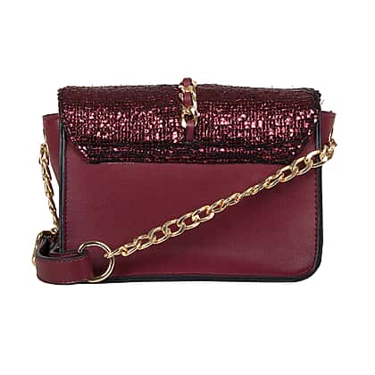 Bulaggi Collection - Calla Crossbody Bag with Metallic Pattern Flap and Adjustable Shoulder Strap (17x13x8cm) - Burgundy