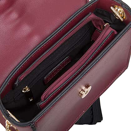 Bulaggi Collection Calla Crossbody Bag with Metallic Pattern Flap and Shoulder Strap - Burgundy