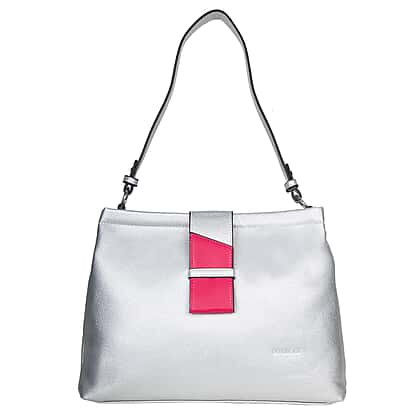 - APPEALING EXTERIOR - The silver exterior of the hobo bag with the vibrant pink decorative band looks highly enticing.