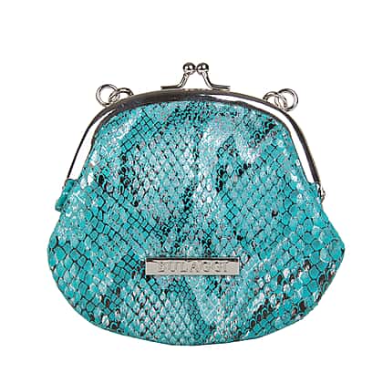 Bulaggi Collection Jade Snake Print Coin Purse with Shoulder Chain in Turquoise 13x11x01 Cm