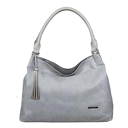 - Decorative single tassel, solid light grey colour shoulder strap and silver-toned hardware enhance its design
