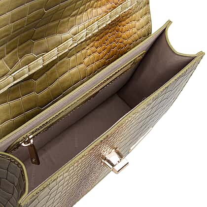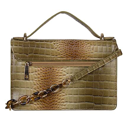 - Featuring tantalizing croc-pattern exterior and an ornamental turtle shell closure