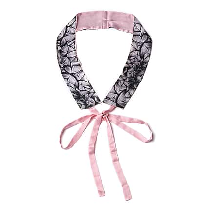Butterfly Pattern 100% Mulberry Silk Satin Belt (Size 260 Cm) - Pink and Black
