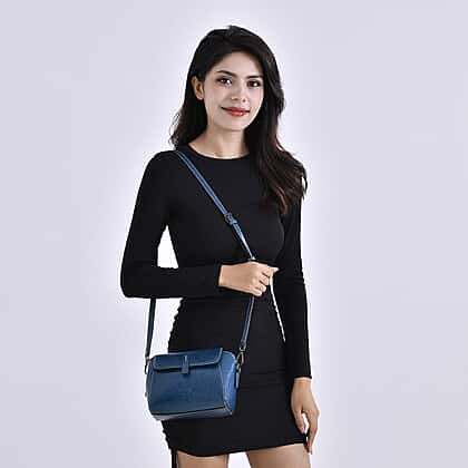 One Time Deal - Designer Inspired Leather Patterned Crossbody Bag (Size 23x10x14 cm) - Blue