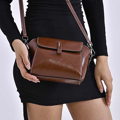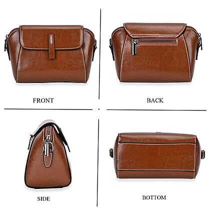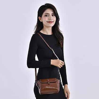 One Time Deal - Designer Inspired Leather Patterned Crossbody Bag (Size 23x10x14 cm) - Brown